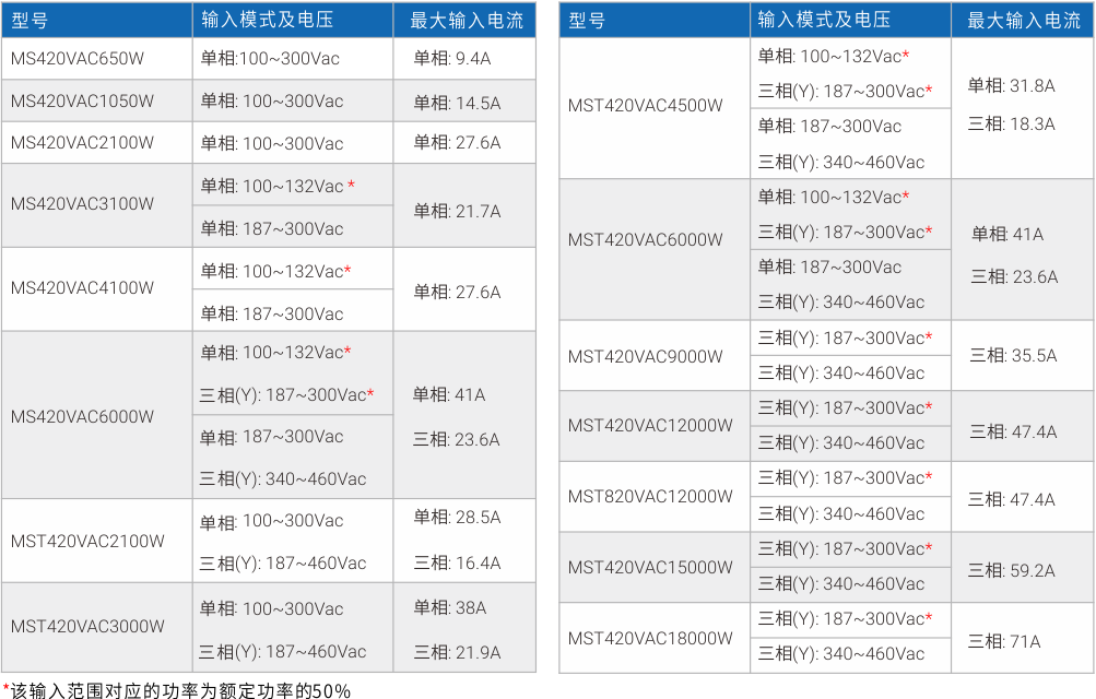 | MST420VAC6000W | 210V/420V | 1Φ: 60A/30A 3Φ: 20A/10A |