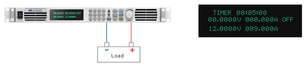 This function is applicable to unattended occasions, activate the timer and the output, the screen will show the countdown of the timer. Once it reaches down to zero, the supply will turn off the output automatically. And the full protection of the power supply will make sure the safe usage of this function.