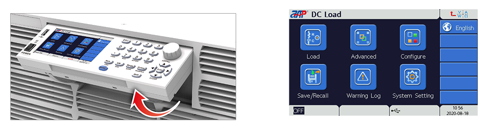 This series High Power DC Load is equipped with flippable front panel for 4U, 7U, 10U and 13U height models. Together with a large color touch screen provides simple and fast operation for customer. Real-time update of display input data, status and graphical display makes it more intuitive.