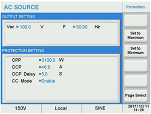 Enter sub interface of Protection could set the power source to enter CC mode when output current is higher than OCP setting value.